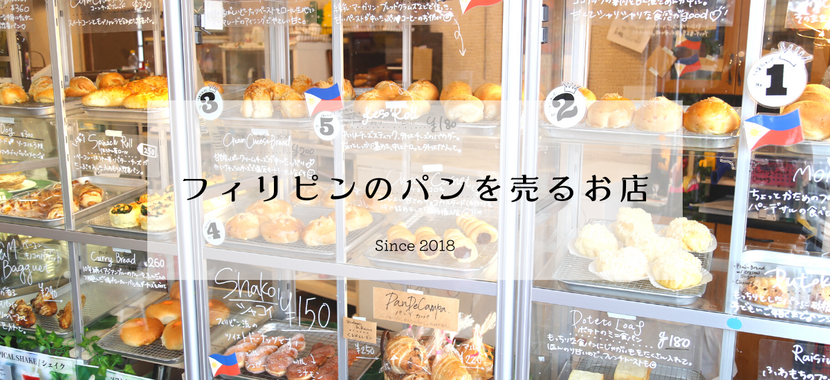 当店では珍しいフィリピンのパンを製造販売しています。店頭購入はもちろん、オンラインでもお買い求めいただけます。